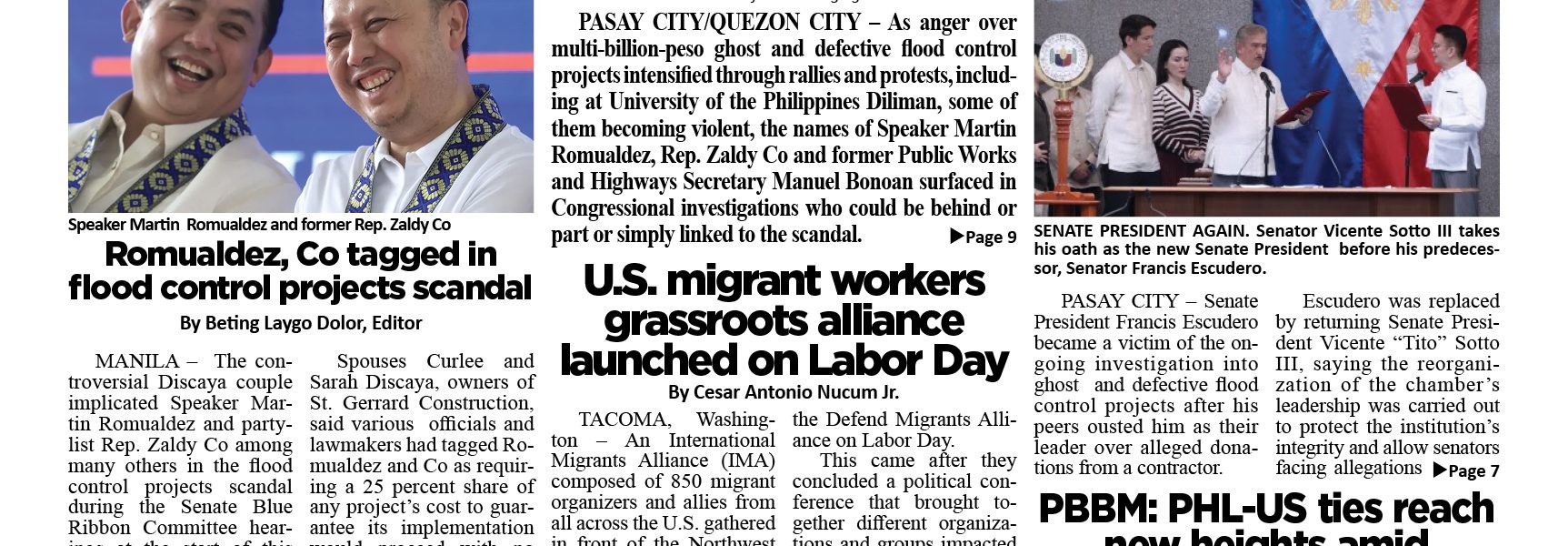 2 SENATORS, ROMUALDEZ, BONOAN, 17 SOLONS IN FLOOD CONTROL SCANDAL; Heads roll at DPWH; Speaker Romualdez, Co linked to budget insertions