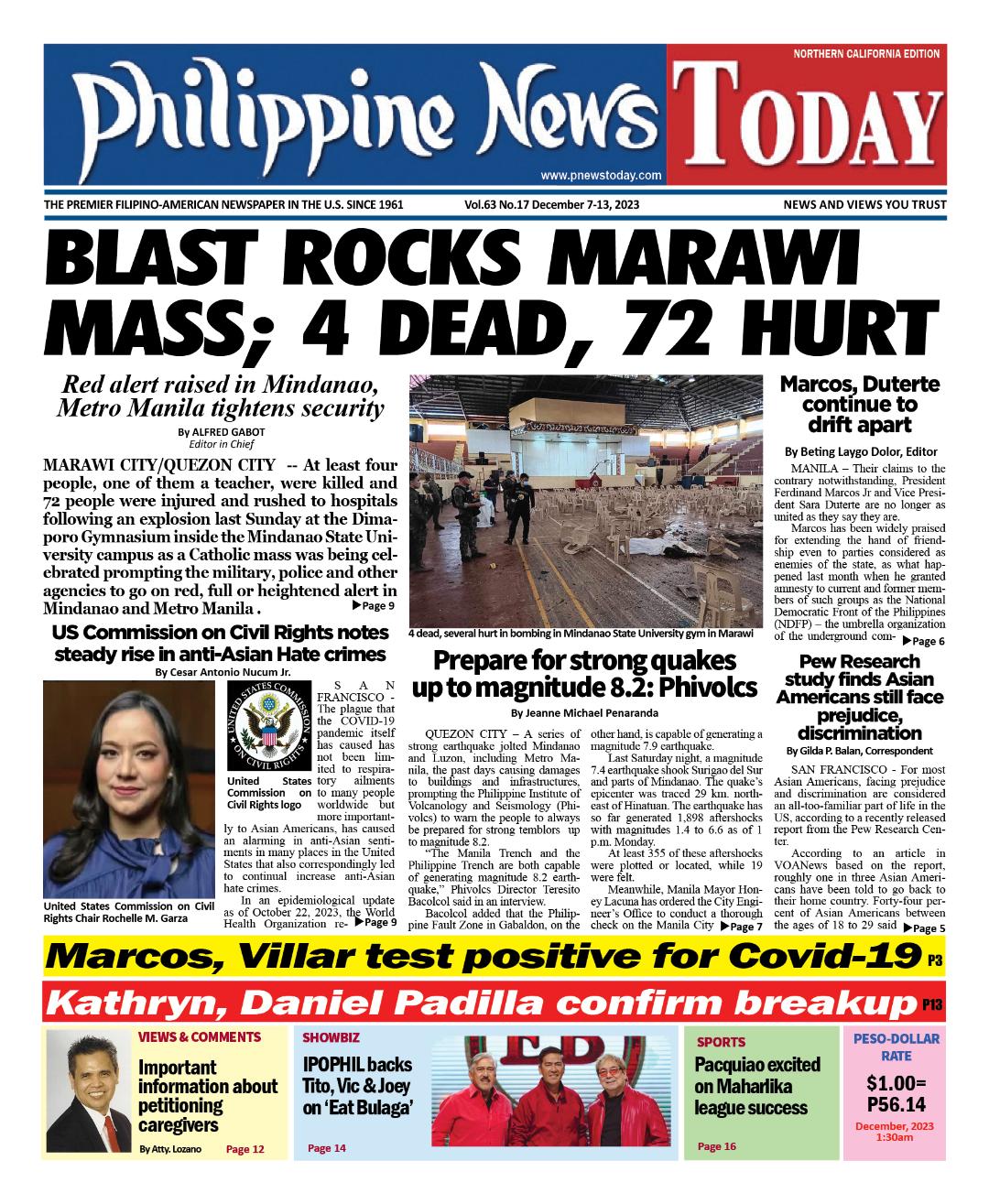 By ALFRED GABOT, Editor in Chief MARAWI CITY/QUEZON CITY — At least four people, one of them a teacher, were killed and 72 people were injured and rushed to hospitals following an explosion last Sunday at the Dimaporo Gymnasium inside the Mindanao…