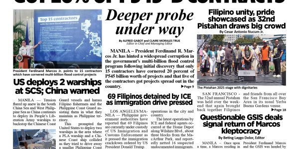 As the National Capital Region and several provinces are battered with incessant floods during typhoons and other weather disturbances, President Ferdinand R. Marcos Jr. has hinted a widespread corruption in the government’s multi-billion flood control program following initial discovery that only 15 contractors have cornered 20 percent of P545 billion worth of projects and that five of the contractors got projects spread out in the country.