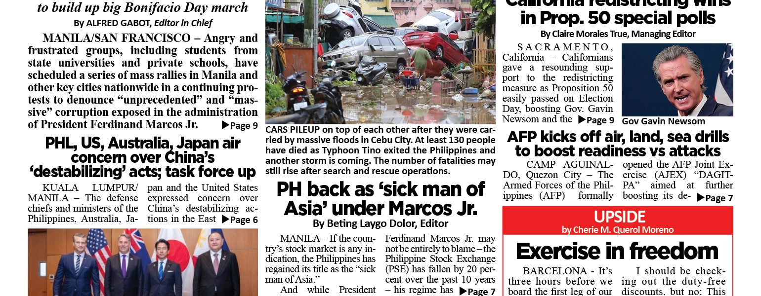 MANILA/SAN FRANCISCO – Angry and frustrated groups, including students from state universities and private schools, have scheduled a series of mass rallies in Manila and other key cities nationwide in a continuing protests to denounce “unprecedented” and “massive” corruption exposed in the administration of President Ferdinand Marcos Jr.
