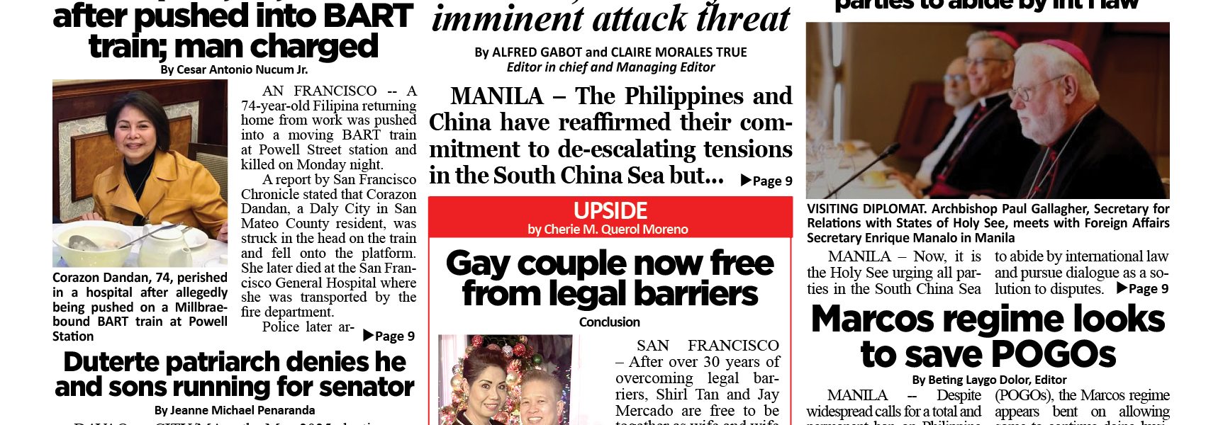 MANILA – The Philippines and China have reaffirmed their commitment to de-escalating tensions in the South China Sea but, while holding their dialogue, Sen. Imelda “Imee” Marcos warned on China’s supposed plan to use hypersonic missiles targeting at least 25 military bases of the Philippines and the United States, including those in Ilocos Norte, Batanes and Cagayan, as China’s biggest Coast Guard vessel called the “Monster” returned to Ayungin Shoal in the West Philippine Sea.