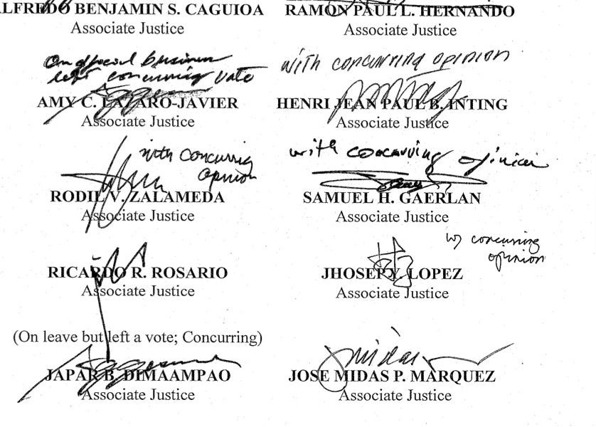 The High Court spokesman, Atty. Camille Ting, said the SC voted 13-0 to throw out the impeachment complaint with Associate Justice Alfredo Benjamin Caguioa inhibiting while Associate Justice Maria Filomena Singh was on leave. The ruling’s ponente was Associate Justice Marvic Leonen, an appointee of President Benigno Noynoy Aquino.