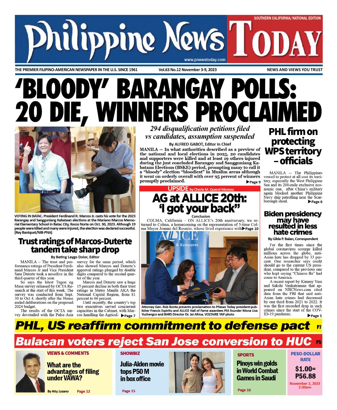 The Comelec said those who filed their CoCs for senator included seven reelectionists led by Sen. Maria Imelda “Imee” Marcos, Ramon “Bong” Revilla Jr., Manuel “Lito” Lapid, Francis Tolentino, Ronald dela Rosa, Christopher Lawrence Go, and Juliana Pilar Cayetano and several comebacking former senators Vicente Sotto III, Emmanuel “Manny” Pacquiao, Panfilo Lacson, Francis Pangilinan, Benigno Paolo Aquino IV, and Gregorio “Gringo” Honasan.